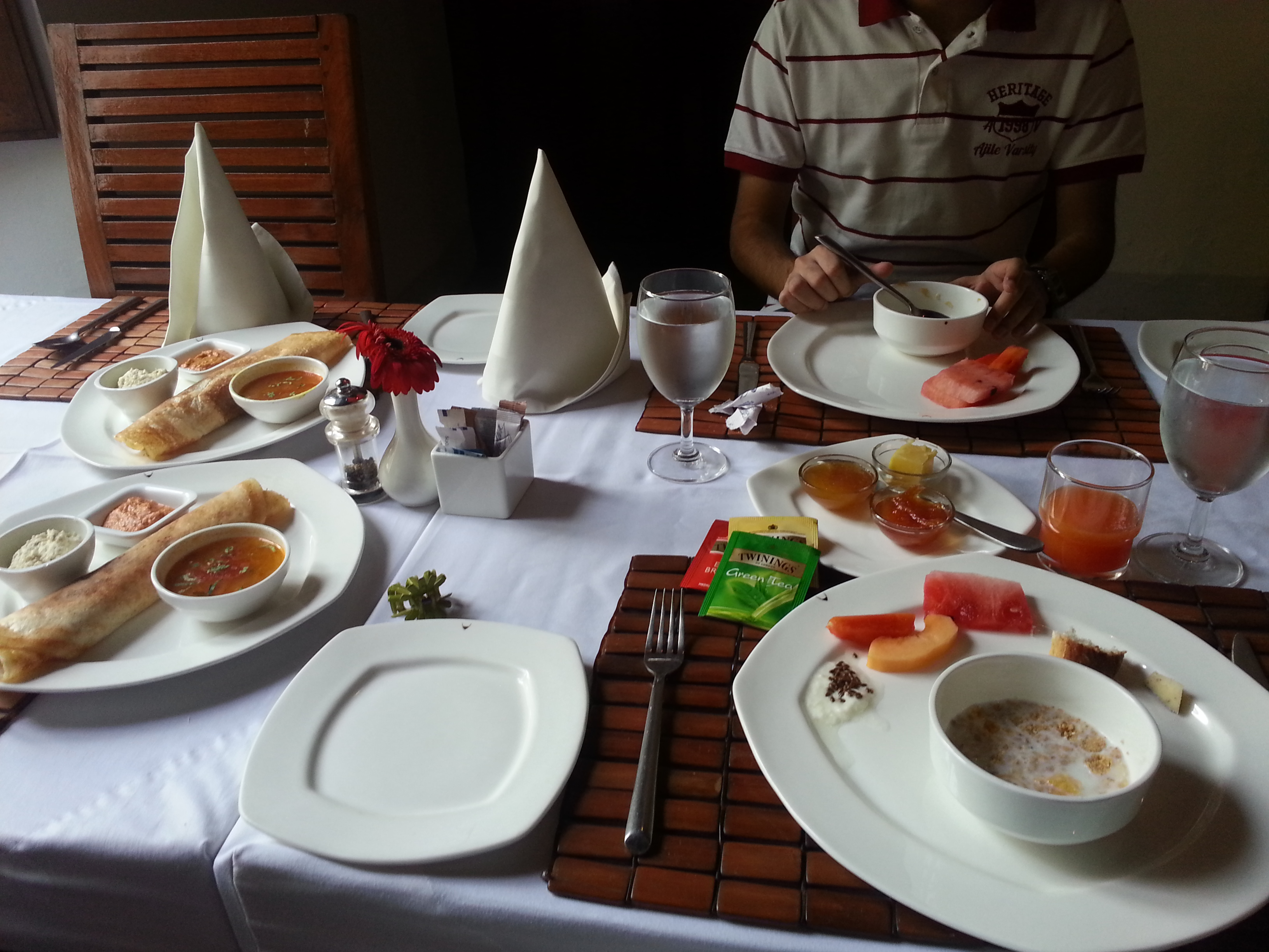Don’t miss the opportunity of staying at one of the few boutique hotels in White Town (French side of Pondicherry). I stayed at Le Dupleix, but you can also consider The Promenade (a Hidesign hotel). Most of the residences are spacious, with wooden flooring and glass-walled bathrooms (perfect for honeymooners 😉 ). My hotel had tables laid out on the patio for open-air dining.